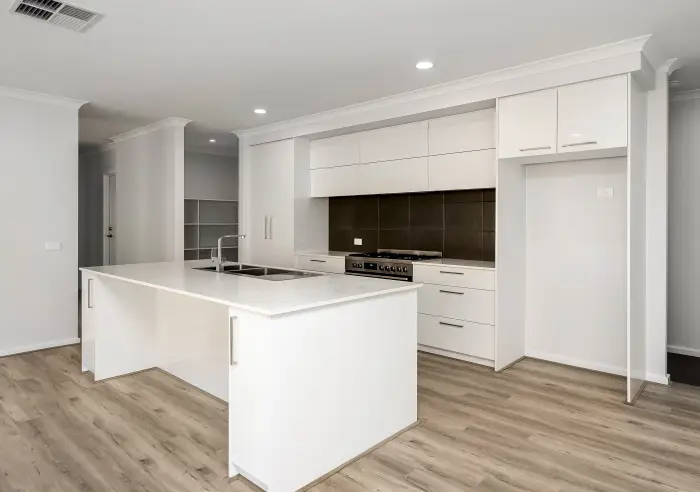 Step inside to discover high ceilings, LED downlights, and two generous living areas designed for both family comfort and entertaining. The heart of the home is the designer kitchen, featuring stone benchtops, an impressive 1200mm-wide island bench, and a walk-in pantry — perfect for those who love to cook and host.